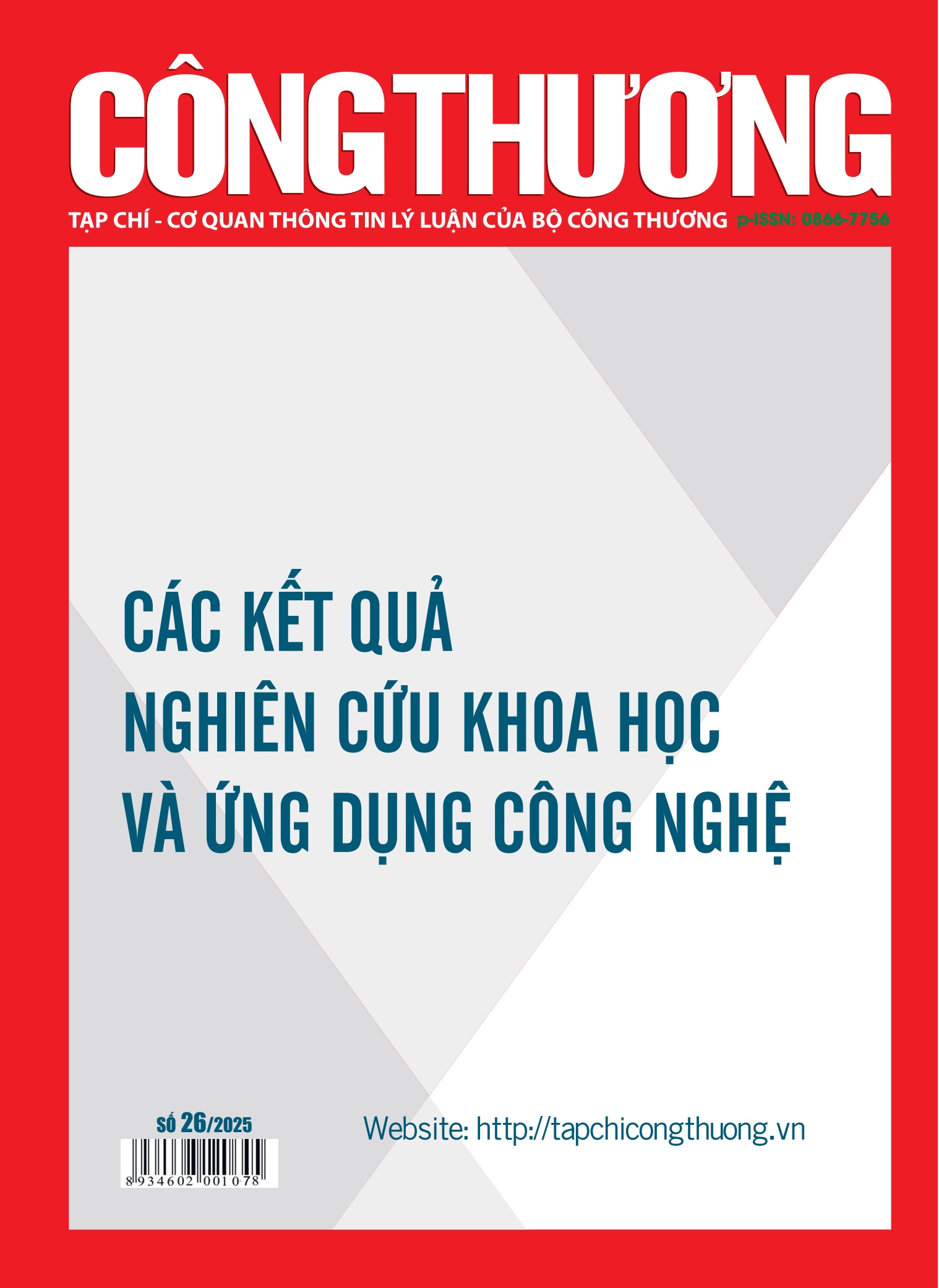 Tạp chí Công Thương - Các kết quả nghiên cứu khoa học và ứng dụng công nghệ số 16 tháng 5 năm 2025 đăng tải các bài nghiên cứu khoa học thuộc ngành Kinh tế học