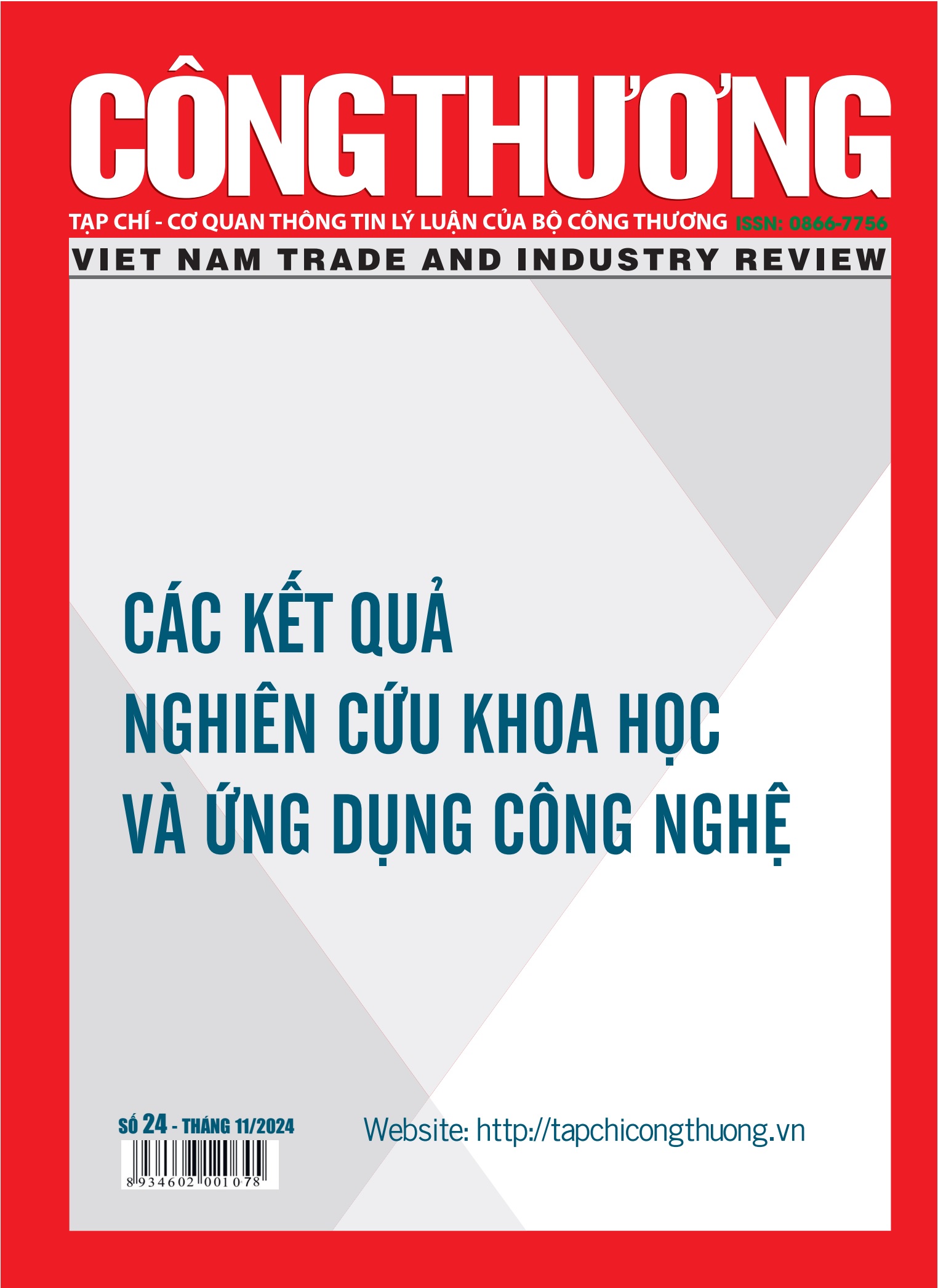 Tạp chí Công Thương - Các kết quả nghiên cứu khoa học và ứng dụng công nghệ số 23 tháng 11 năm 2024 đăng tải các bài nghiên cứu khoa học thuộc các lĩnh vực: Kinh tế, Quản trị - Quản lý, Kinh doanh, và Kế toán - Kiểm toán